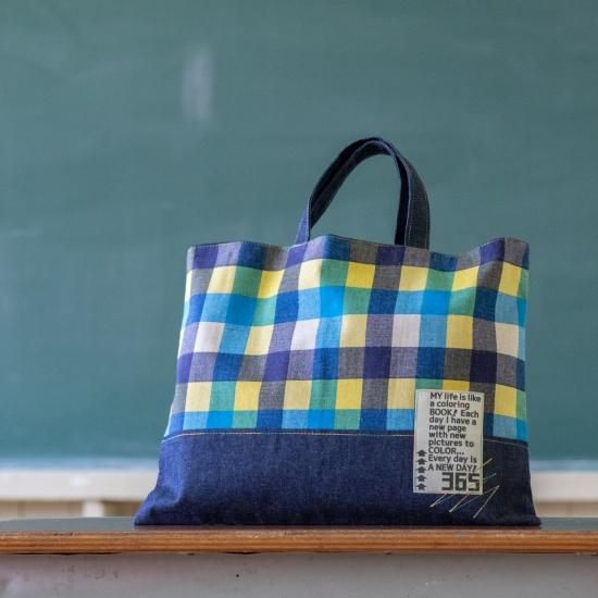 目を引くカラフルなチェック柄に、軽くてしっかりしたデニム生地を合わせ、