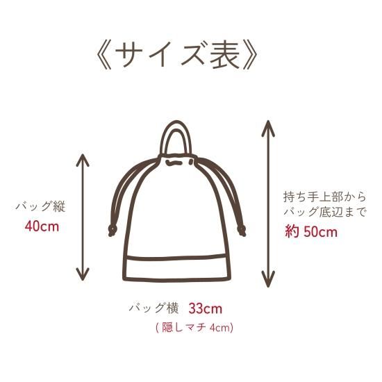 上履き入れ:縦30cm×横23cm。(裏地あり)