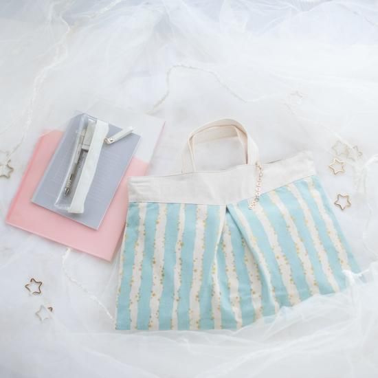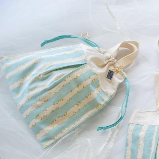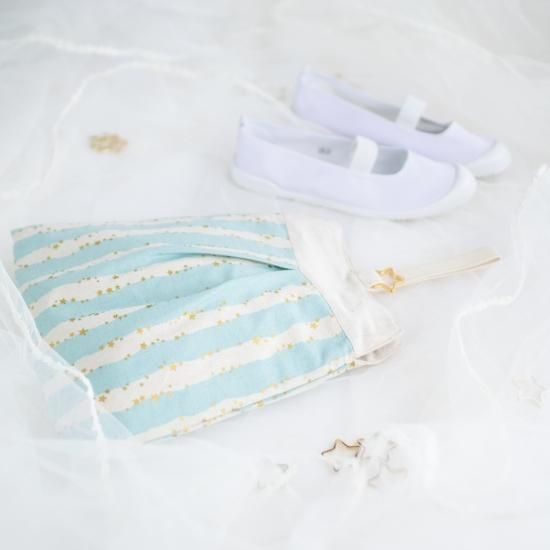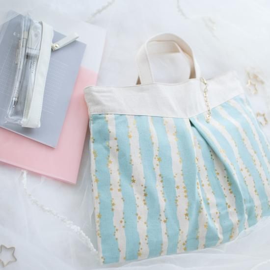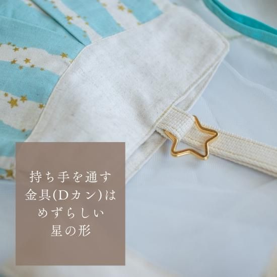 写真ではあまり分かりませんが、星のプリント、縫い糸、持ち手の飾り縫い、全てラメが入っているのでキラキラしてとても可愛いです。