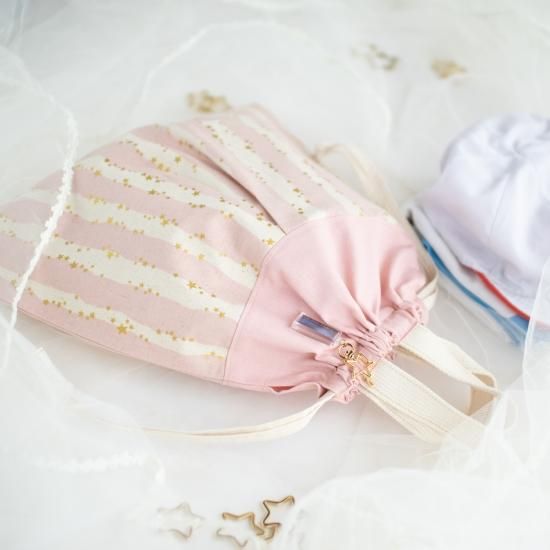 キラキラの星が大好きな女の子におくる、星でいっぱいの体操着袋です。