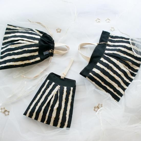 写真ではあまり分かりませんが、星のプリント、縫い糸、持ち手の飾り縫い、全てラメが入っているのでキラキラしていてとても可愛いです。