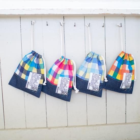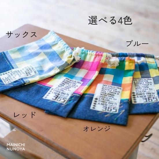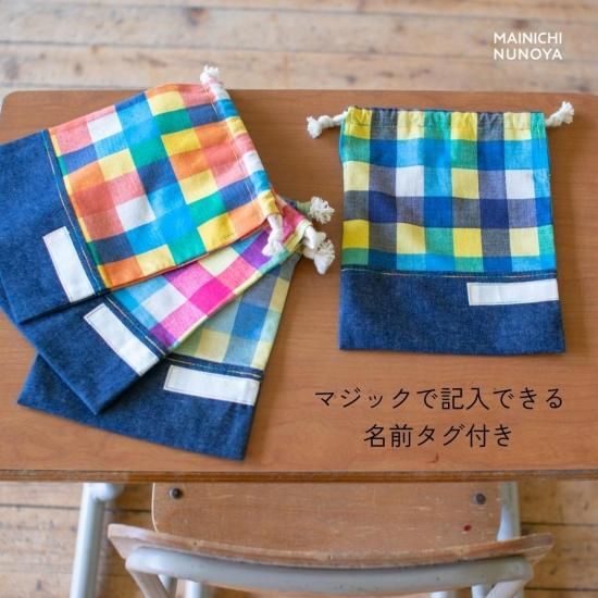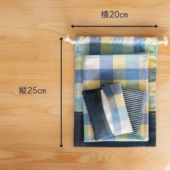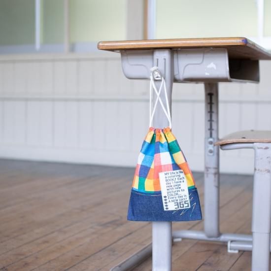 給食袋・道具袋、エプロン袋などマルチに使える万能サイズの巾着です。
