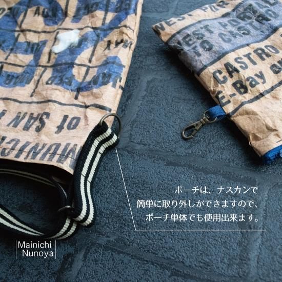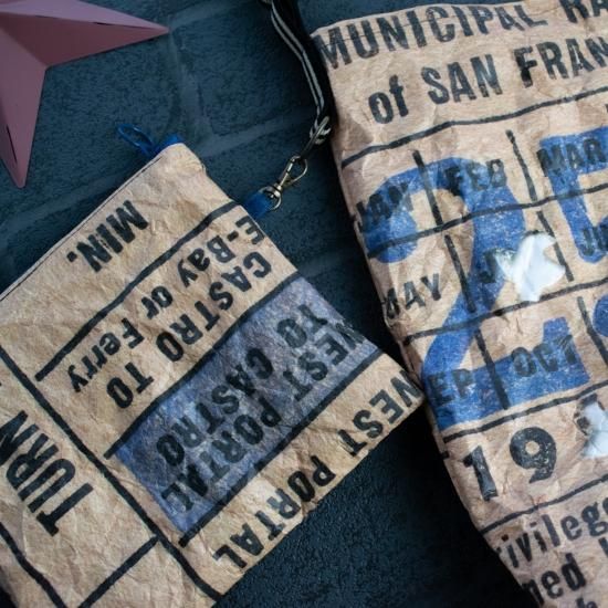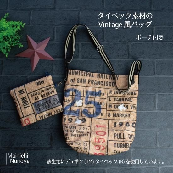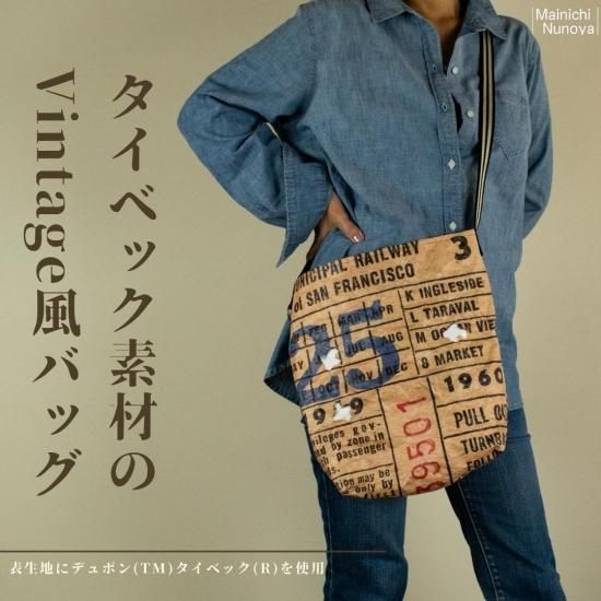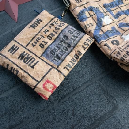 紙のような、ビックリする程軽くて防水機能のあるタイベック(R)を表生地に使用した、男前なビンテージチケット柄のショルダーバッグとポーチのセットです。