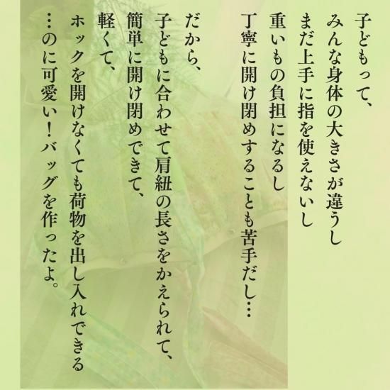 紐を結ぶ形なので、お子さんに合わせて自由に長さを変えていただけます