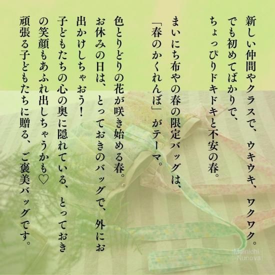まいにち布やの春の限定バッグは、「春のかくれんぼ」がテーマ。