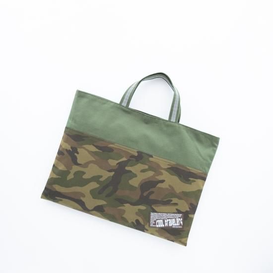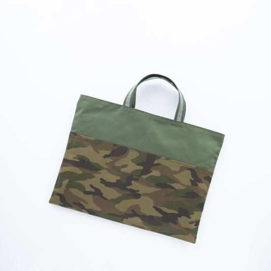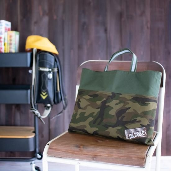 迷彩柄(カモフラージュ柄)に、オリジナルの刺繍タグ。渋いカラーが大人カッコいい。