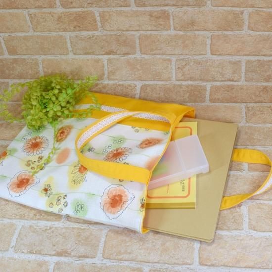 《在庫処分のため、2800円→1500円のセール価格販売です》お子さんから、大人の方まで使える、爽やかな花柄の、トートバッグです。