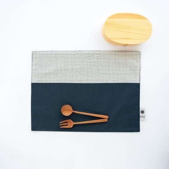 合わせた濃紺の生地は、格子状に織り込んだ、