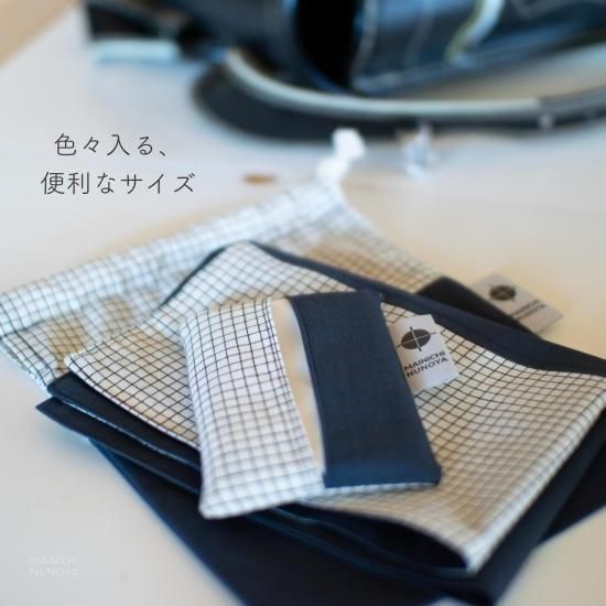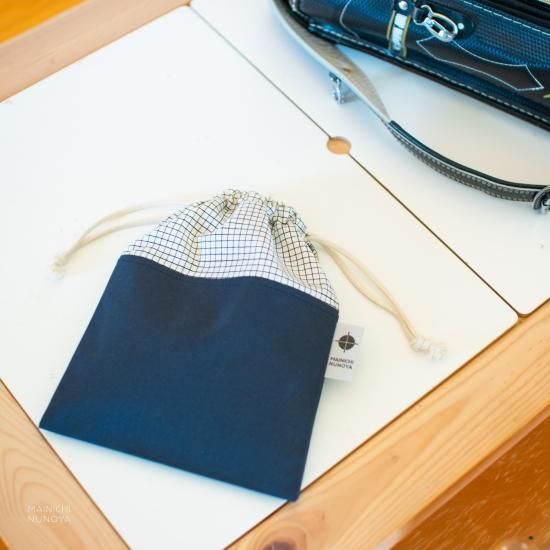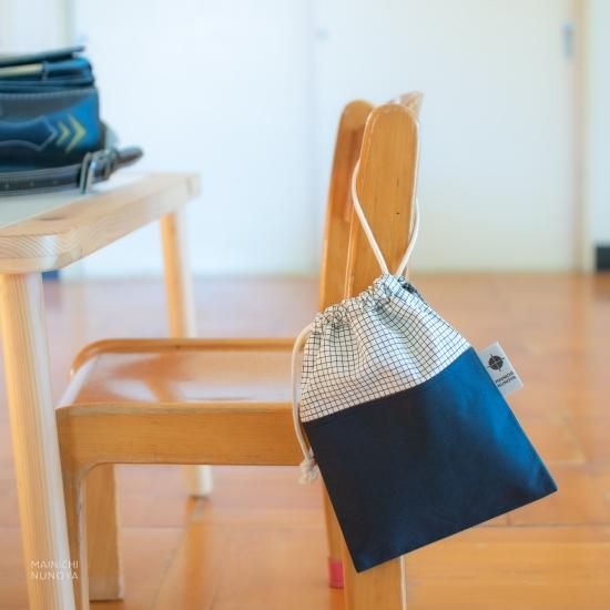 給食袋・道具袋、エプロン袋などマルチに使える万能サイズの巾着です。