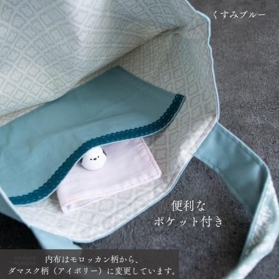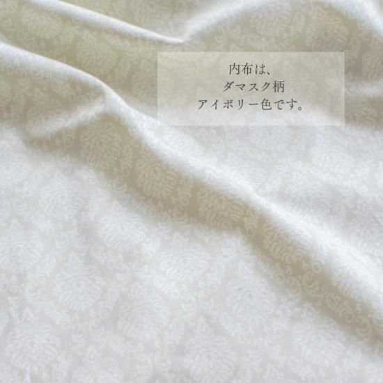 内布はダマスク柄のアイボリー色で、バッグの中も上品に。