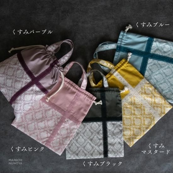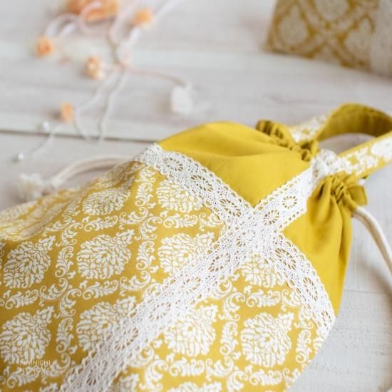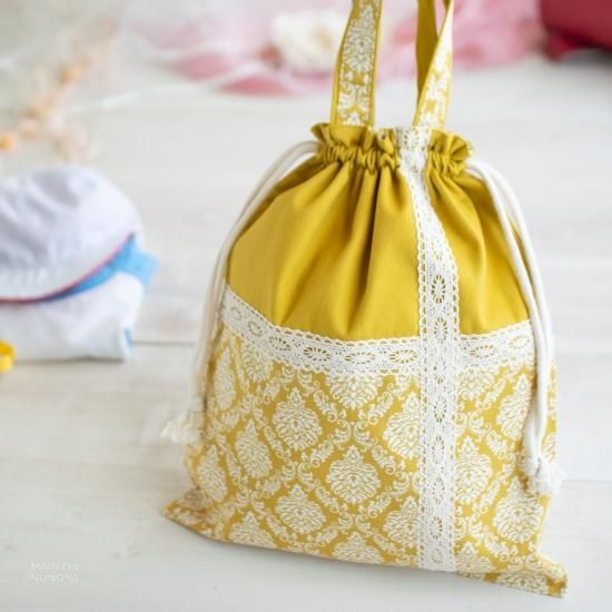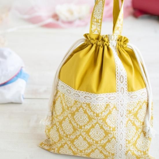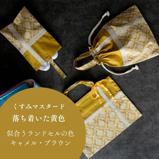 上品なダマスク柄の体操着袋(着替え袋):くすみマスタード |サイズ変更対応