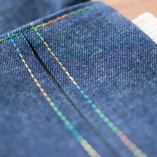 *レインボーの糸を使って縫っていて、おしゃれなアクセントに。
