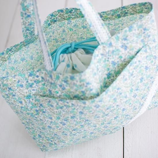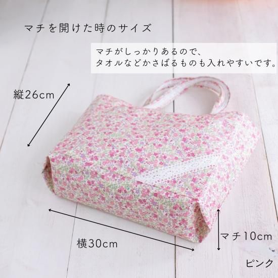 小花柄が可愛い、シンプルなつくりの、小さめ撥水バッグです。