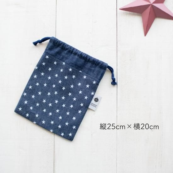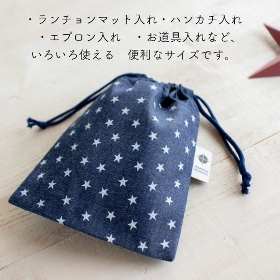 給食袋・道具袋、エプロン袋などマルチに使える万能サイズの巾着です。