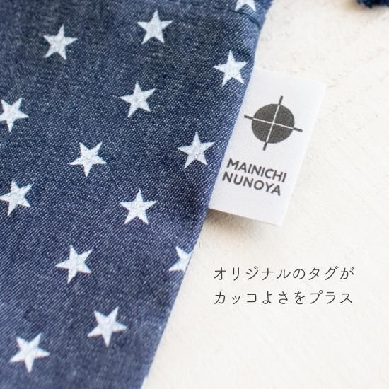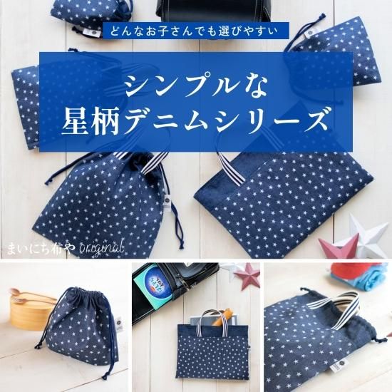 シンプルな星柄と、無地のデニムを合わせているので、どんなお子さんでも使いやすく、お孫さんや、お友だちや親せきのお子さんへの入園入学プレゼントにも最適です。