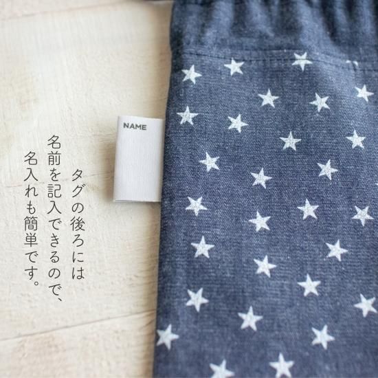 シンプルな星柄と、無地のデニムを合わせているので、どんなお子さんでも使いやすく、お孫さんや、お友だちや親せきのお子さんへの入園入学プレゼントにも最適です。