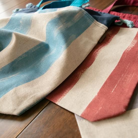 ボーダー生地は、ざっくりした織りの素材感ある綿麻生地。無地はしっかり目の詰まった綿麻生地です。