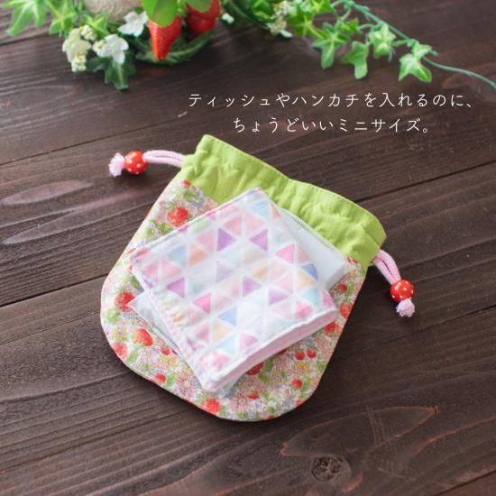 かわいくて、みんな大好きいちご!そんないちごをモチーフにした、小さな巾着です。