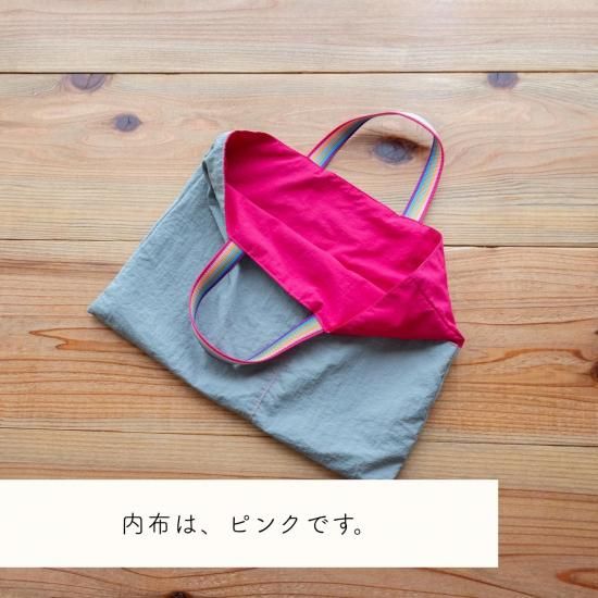 びっくりするくらい軽くて、さらりとした手触りが心地いい。弱はっ水加工を施したナイロンタフタ素材で、軽くて丈夫。